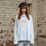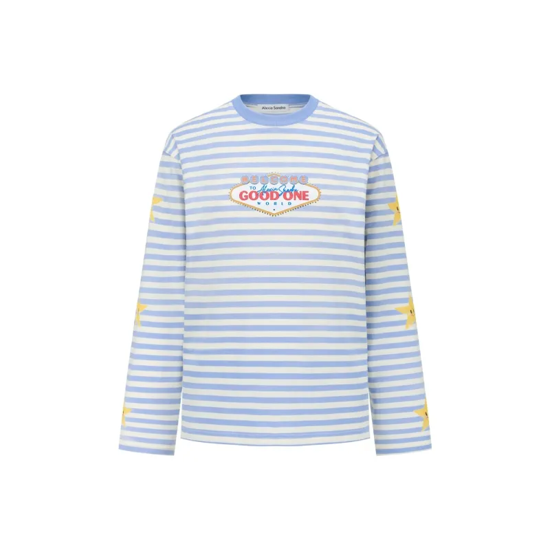 Alexia Sandra 스트라이프 시리즈 블루와 화이트 레터링 여성 맨투맨 - POIZON
