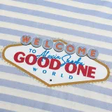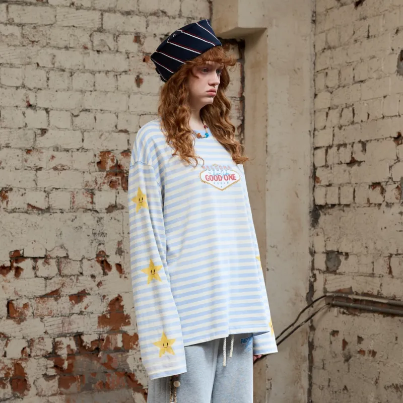 Alexia Sandra 스트라이프 시리즈 블루와 화이트 레터링 여성 맨투맨