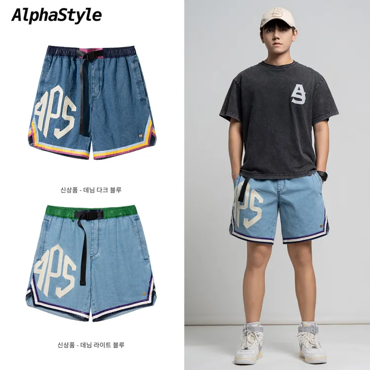 AlphaStyle 남녀공용 데님 반바지 - POIZON