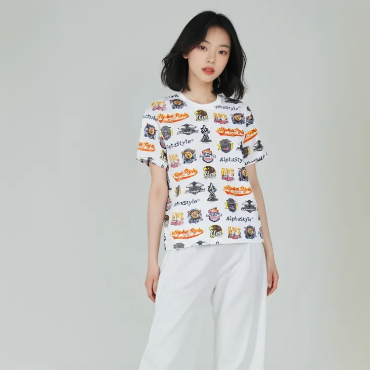 AlphaStyle 화이트 남녀공용 티셔츠 - POIZON