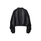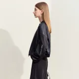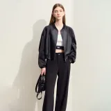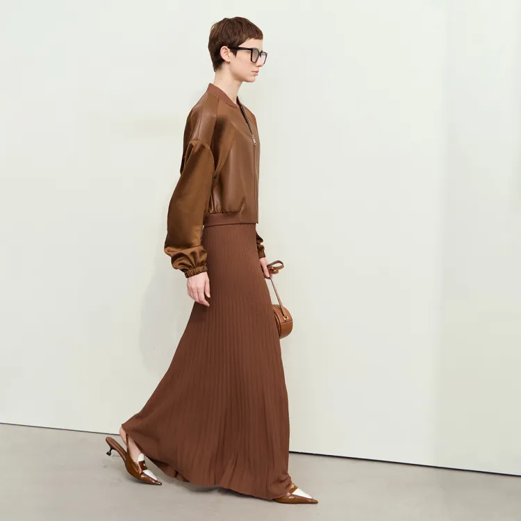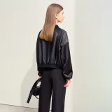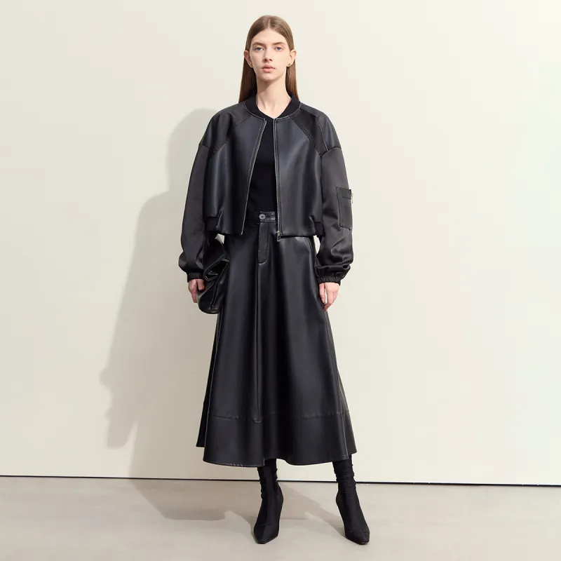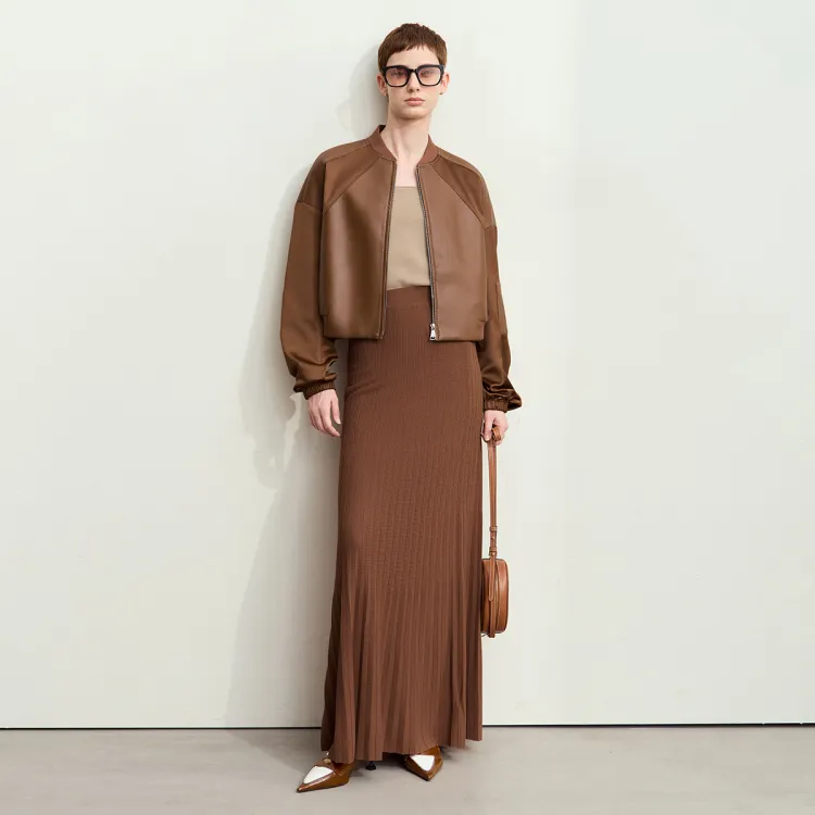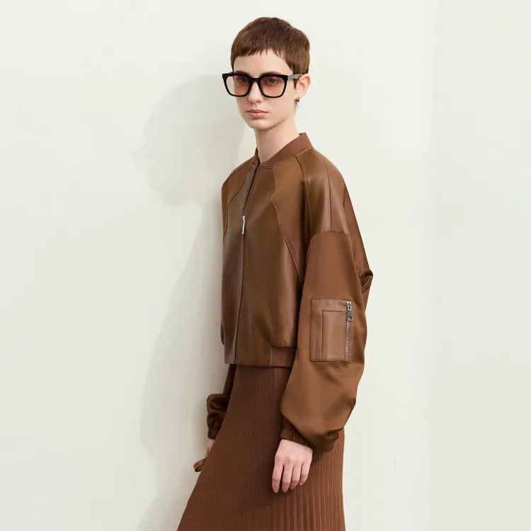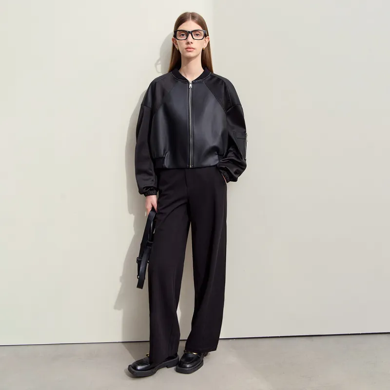 밑감: 51% 비스코스, 49% 폴리에스터 슬리브 패널: 98% 폴리에스터, 2% 스판덱스 안감: 100% 폴리에스터
