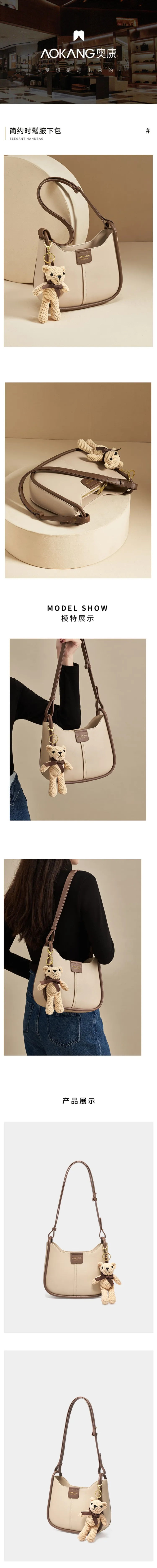 AOKANG 소가죽 새들 가방, <브랜드_1>e 어깨 크로스백, 숄더 백 레귤러 여성 화이트/블랙/옐로우 - POIZON
