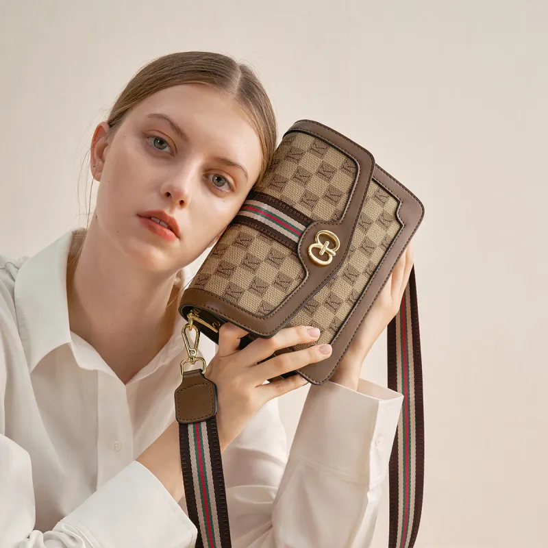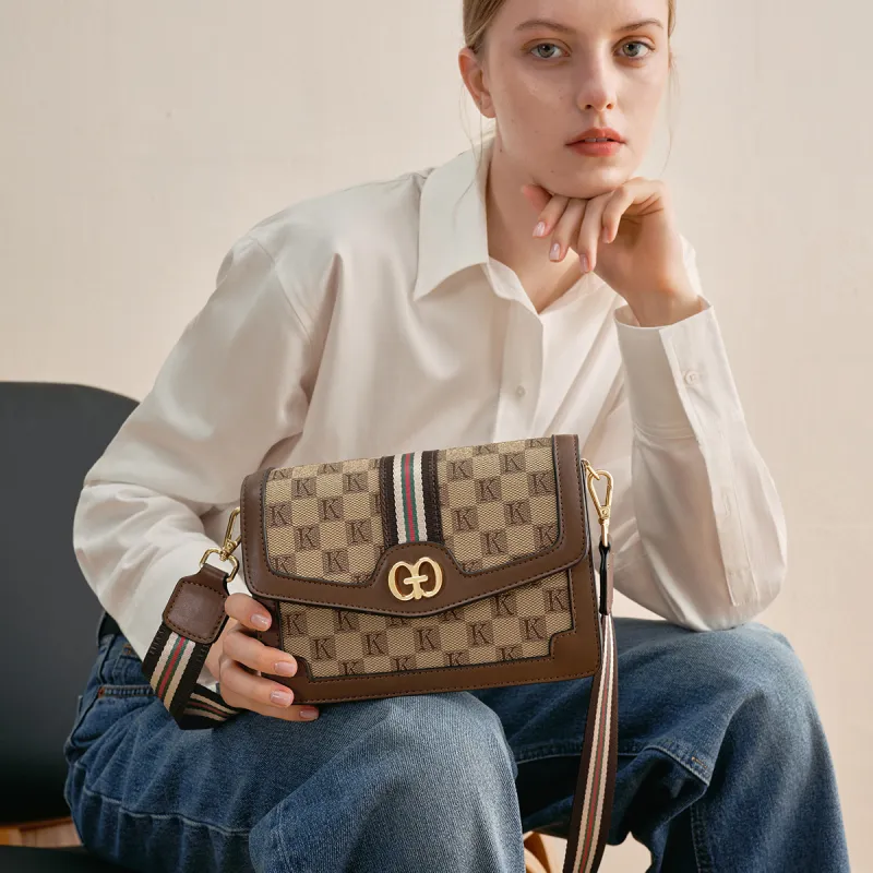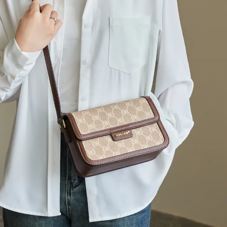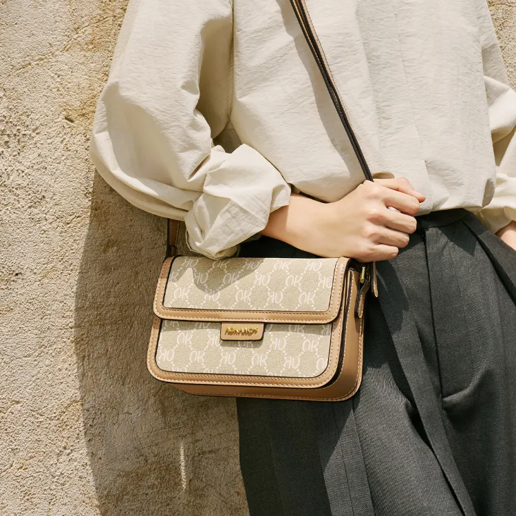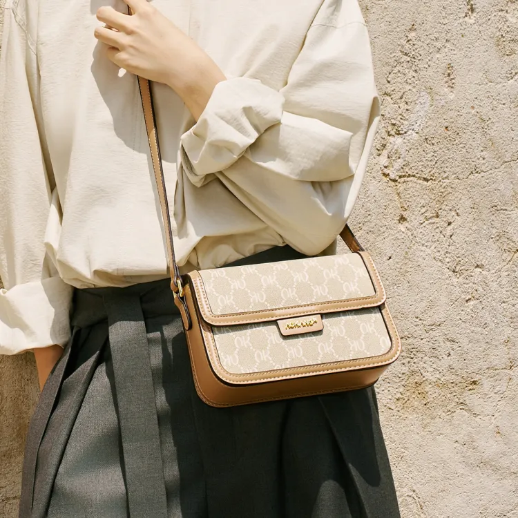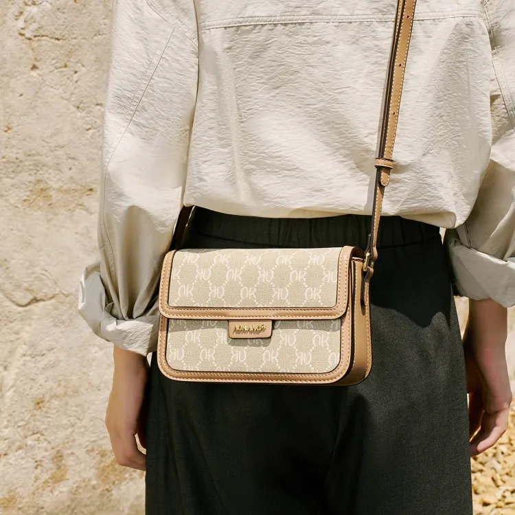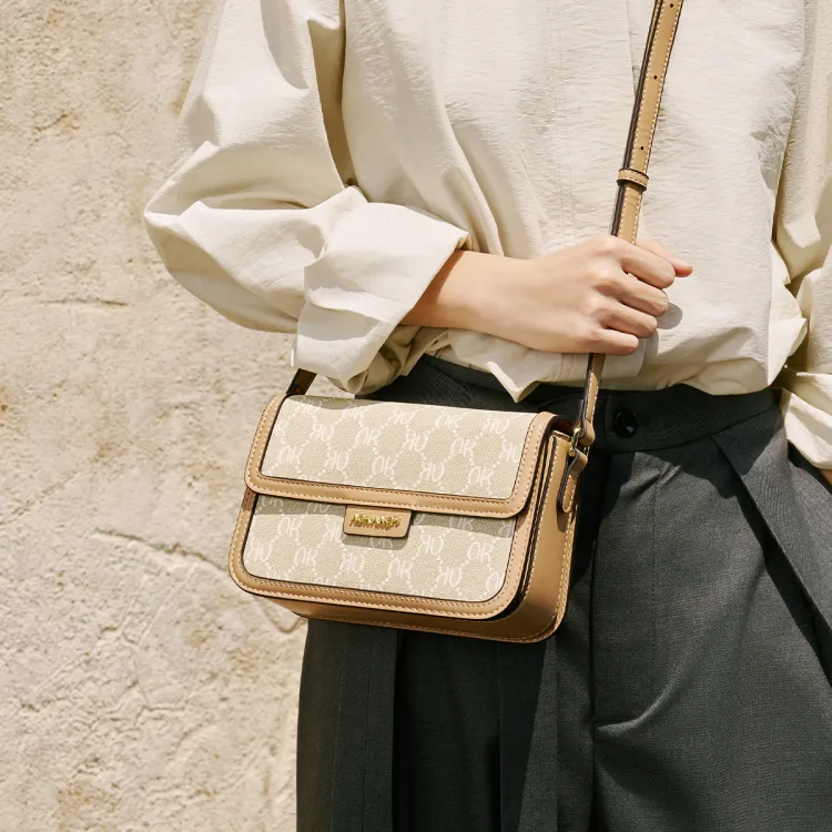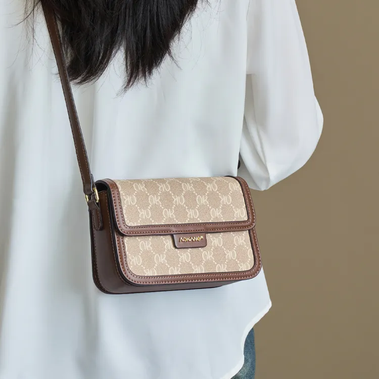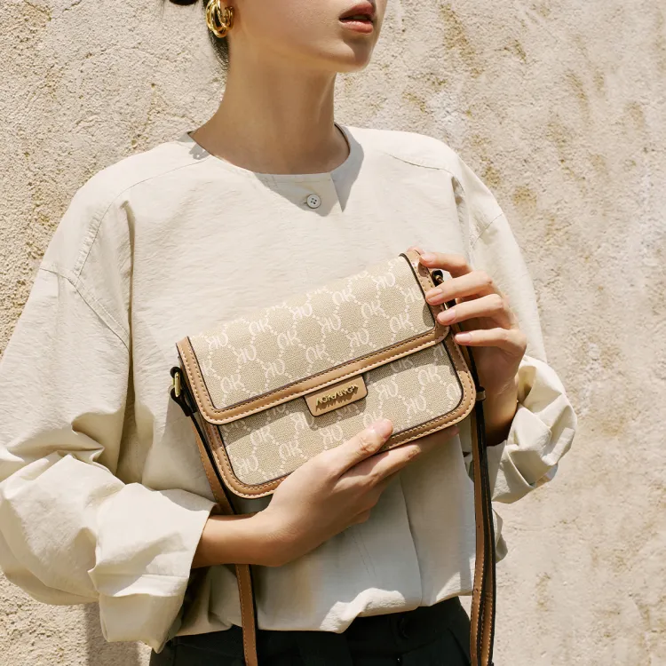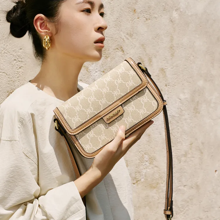 AOKANG PVC 스몰 스퀘어 백 여성 커피 브라운/크림 애프리콧
