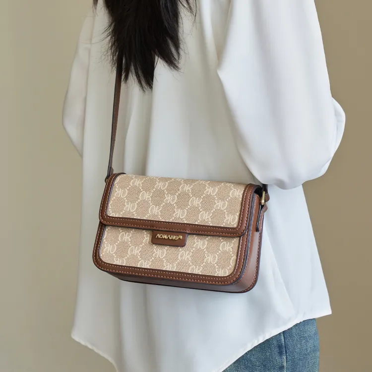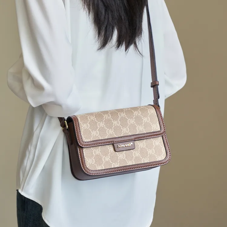 AOKANG PVC 스몰 스퀘어 백 여성 커피 브라운/크림 애프리콧 - POIZON