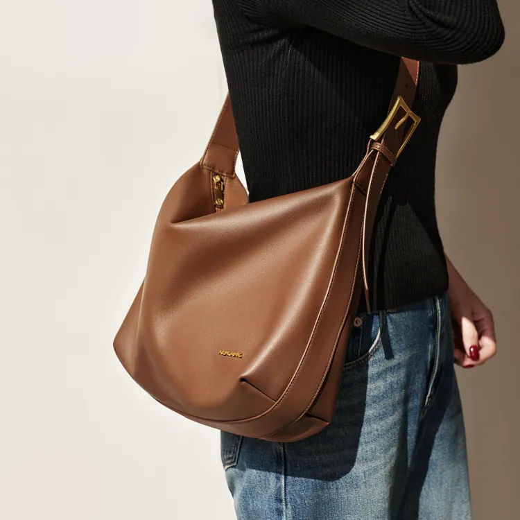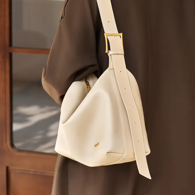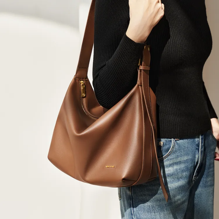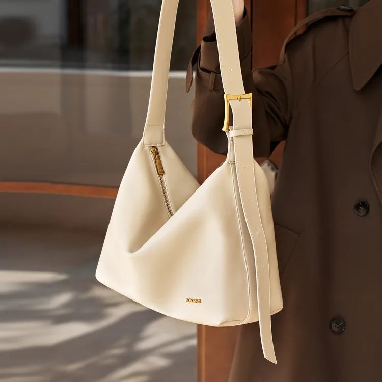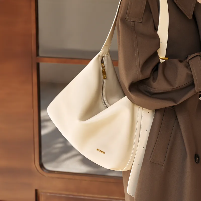 AOKANG 소가죽 토트 호보 백, <브랜드_1>e 어깨 크로스백, 커뮤터 가방 L 여성 코코아 커피/밀크셰이크 화이트/클래식 블랙 - POIZON