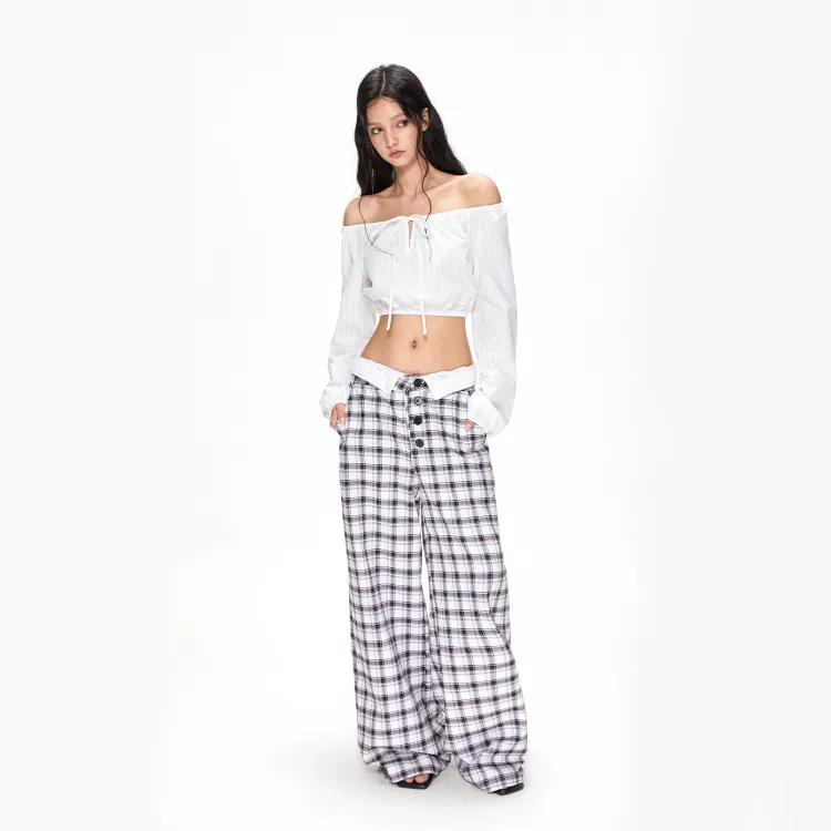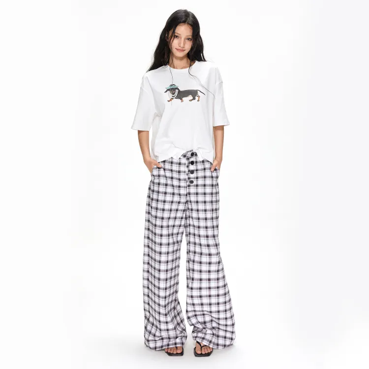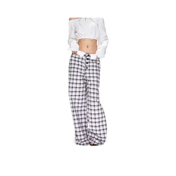 APEA 블랙 레드 체크 여성 캐주얼 팬츠 - POIZON