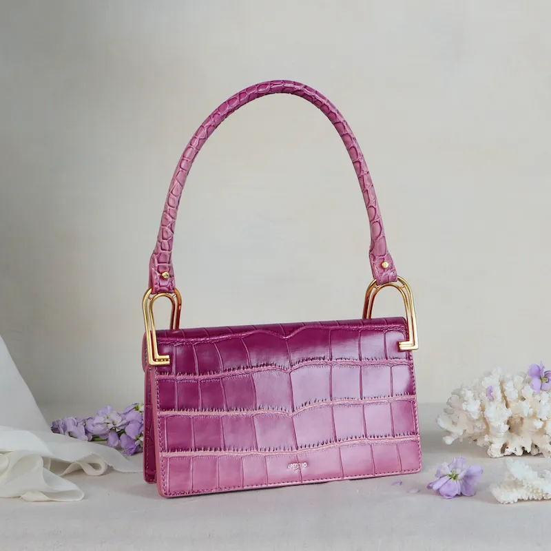APEDE MOD 소가죽 스몰 스퀘어 백, 숄더 백, 핸드백 여성 라즈베리 그라데이션