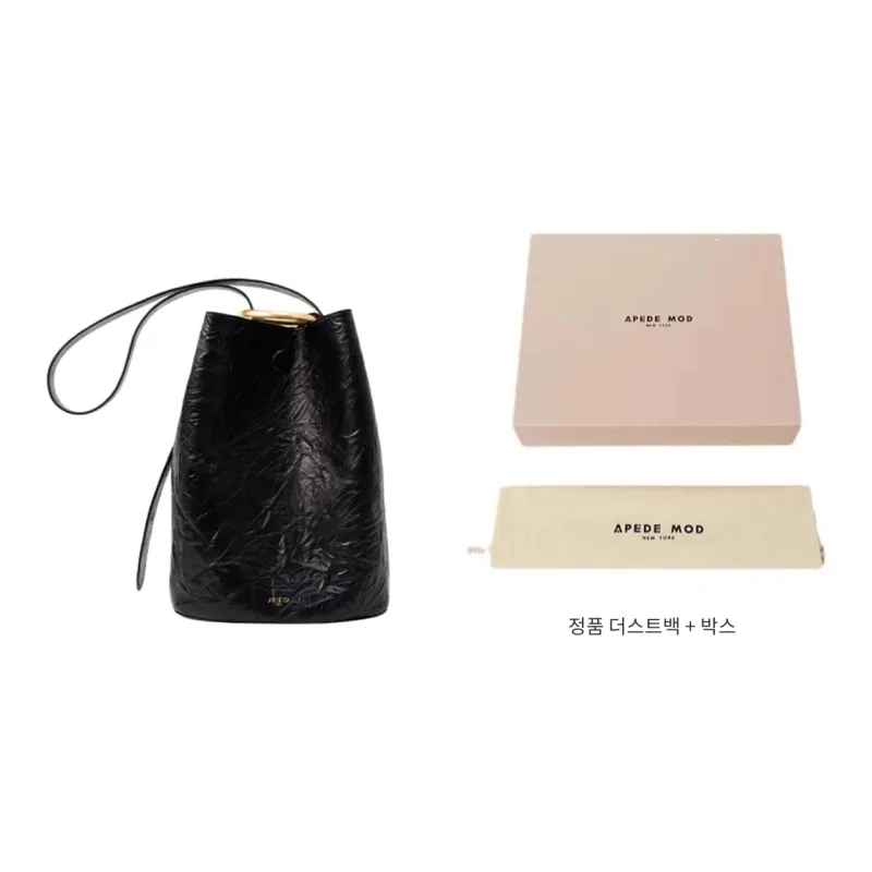 APEDE MOD 풀그레인 소가죽 버킷 백, 크로스바디백 핸드백, 숄더 백 L 여성 블랙 - POIZON