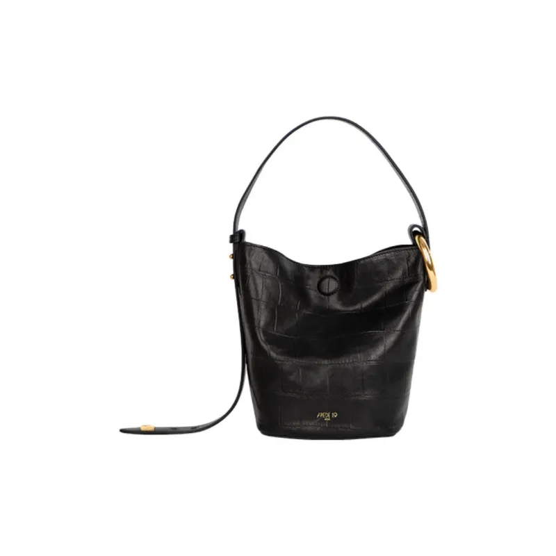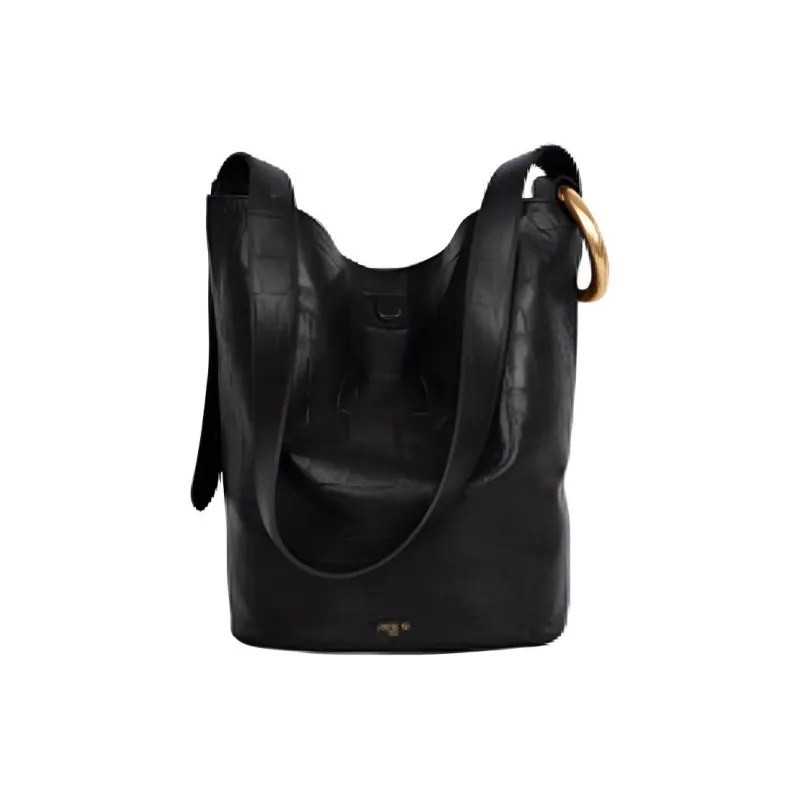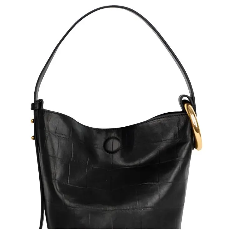 APEDE MOD 풀그레인 소가죽 버킷 핸드백, 숄더 백 S 여성 블랙 크로코다일 패턴 - POIZON