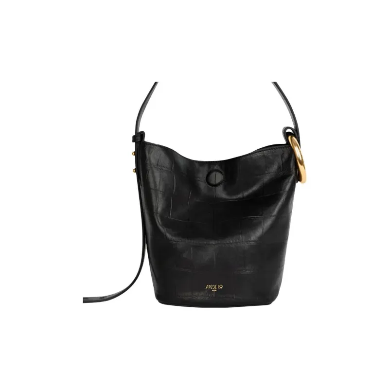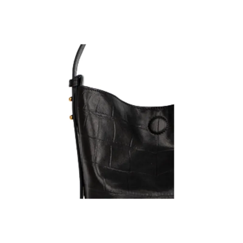 APEDE MOD 풀그레인 소가죽 버킷 핸드백, 숄더 백 S 여성 블랙 크로코다일 패턴