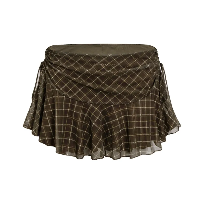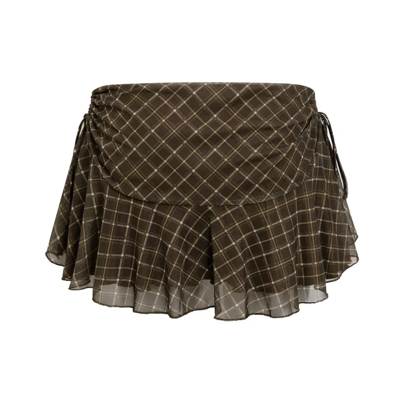 Ariseism 빈티지 브라운 여성 캐주얼 숏 스커트 - POIZON