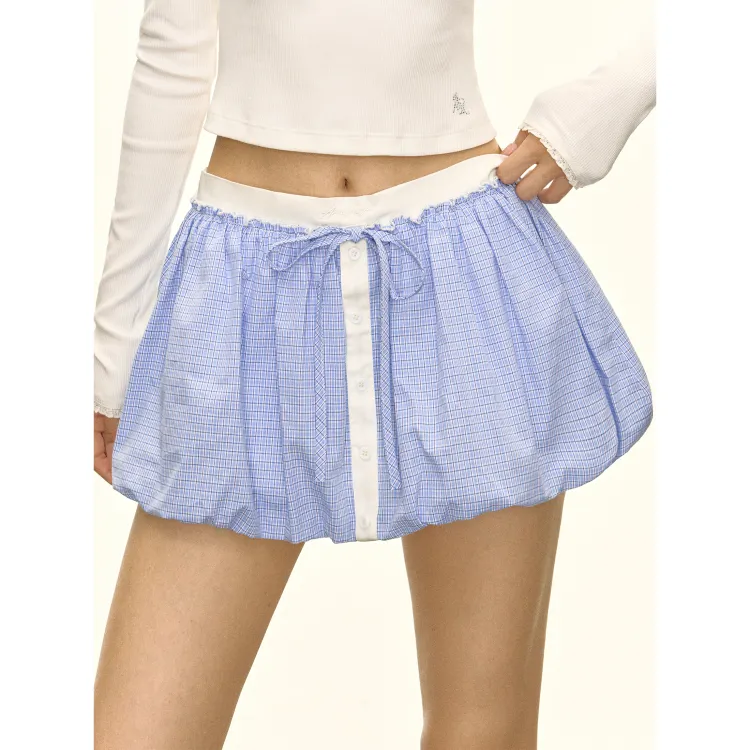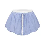 Ariseism 블루 화이트 체크 여성 캐주얼 숏 스커트