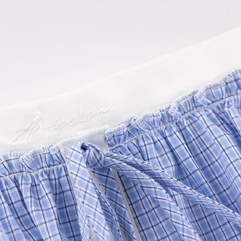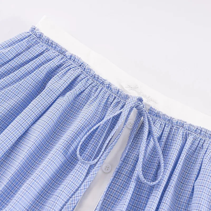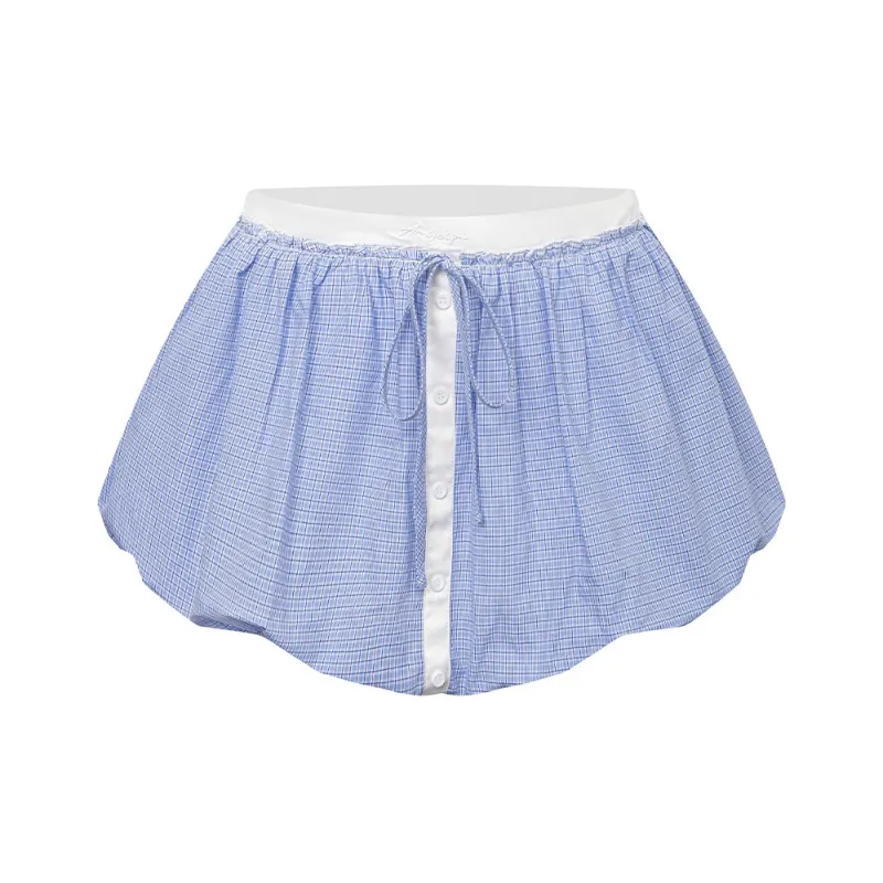 Ariseism 블루 화이트 체크 여성 캐주얼 숏 스커트 - POIZON