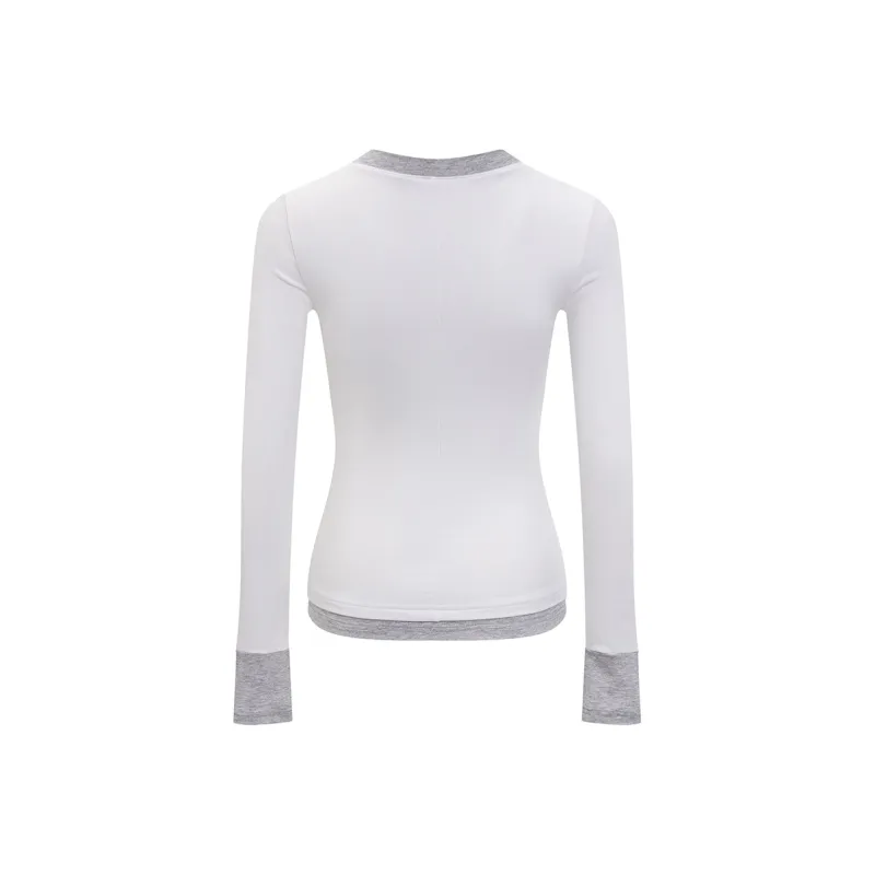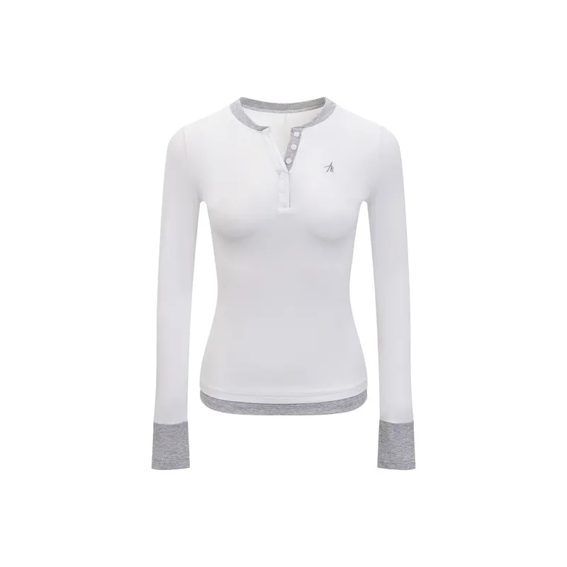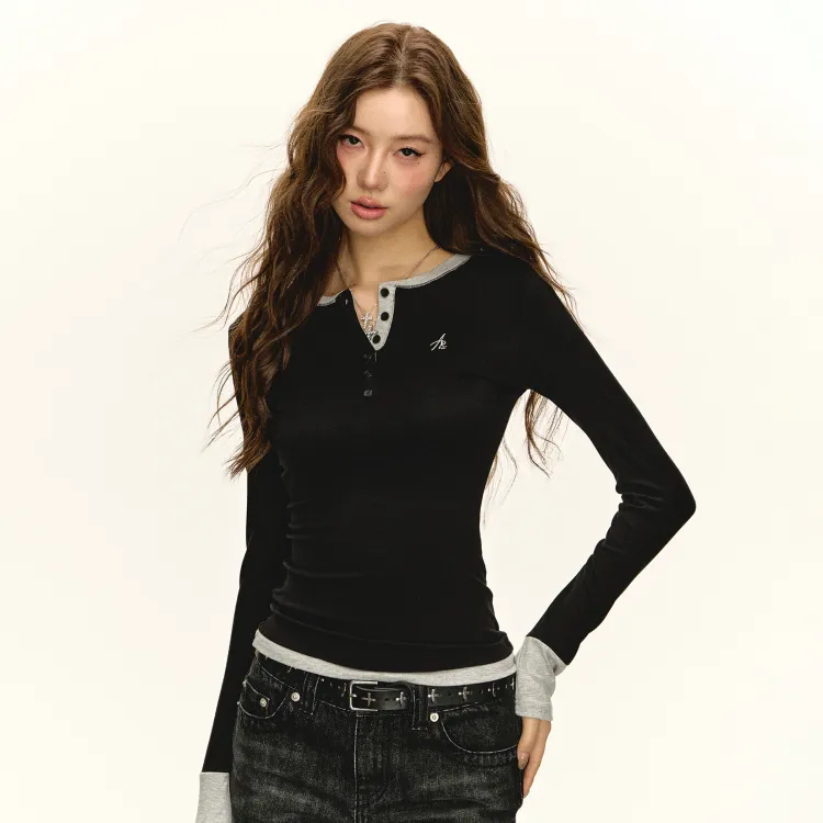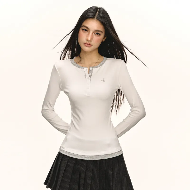 Ariseism 디자인 Focused 헨리 카라 레이어드 룩 긴팔 티셔츠 여성용, 가을 슬림핏 상의 여성 - POIZON
