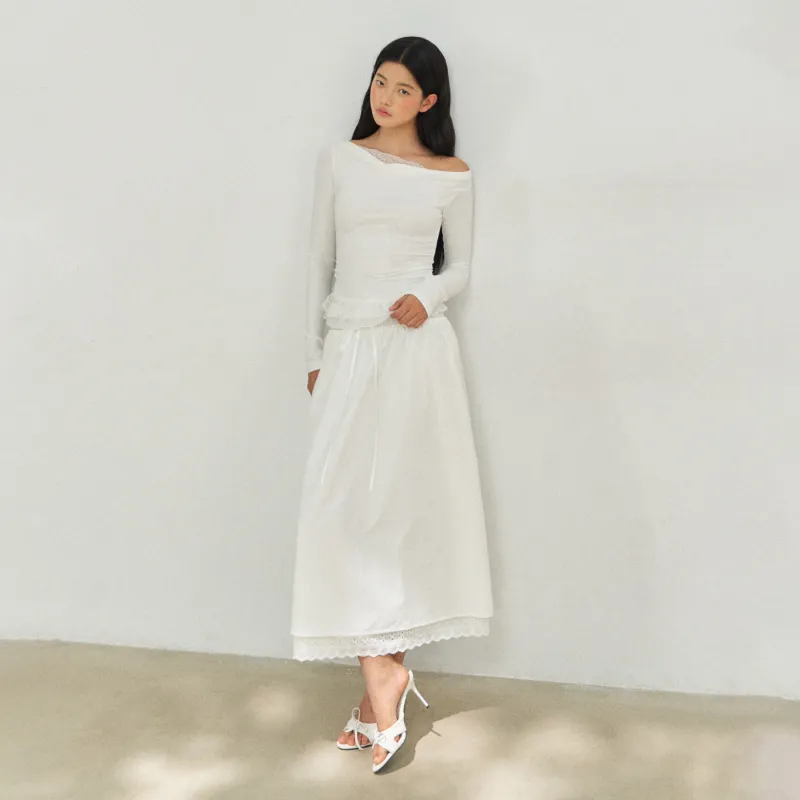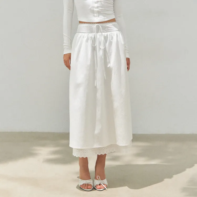 Ariseism 프리미엄 화이트 레이스 스커트 여성용 가을 캐주얼 롱 기장 스커트 여성 - POIZON