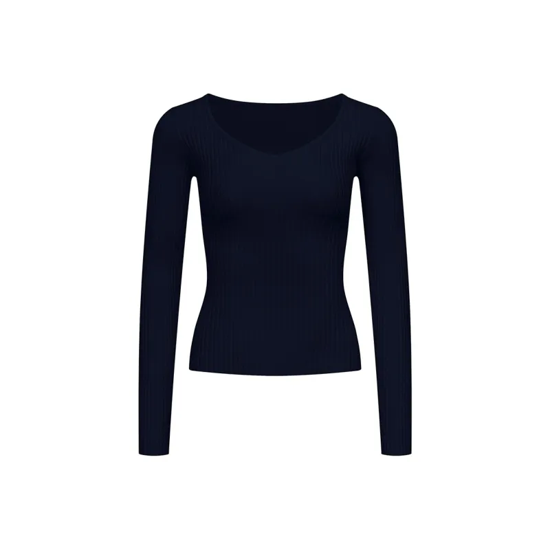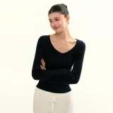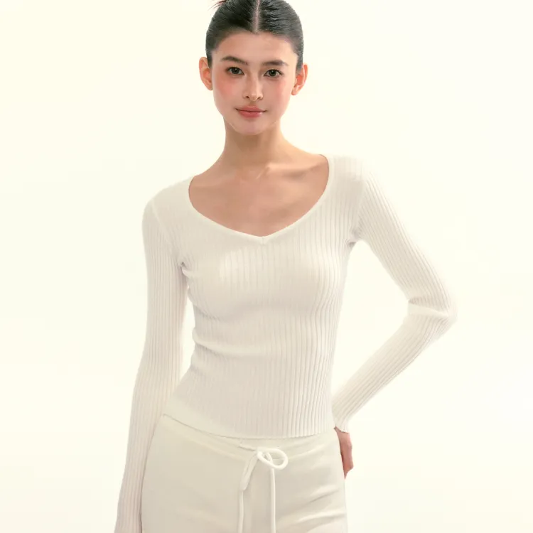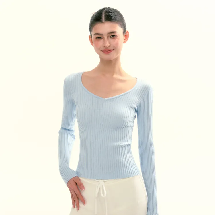 Ariseism 브이넥 스트라이프 패턴 니트웨어 여성 가을 슬림핏 긴팔 상의 여성 - POIZON
