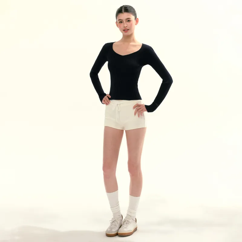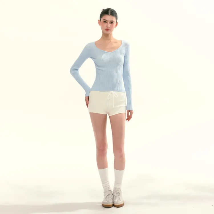 Ariseism 브이넥 스트라이프 패턴 니트웨어 여성 가을 슬림핏 긴팔 상의 여성