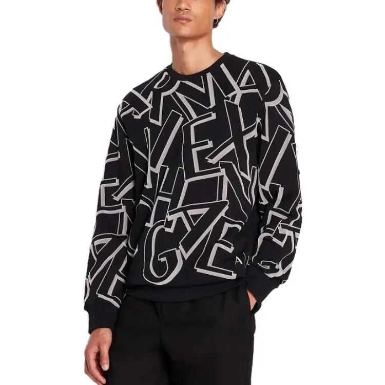 아르마니 익스체인지 블랙 남성 맨투맨 - POIZON