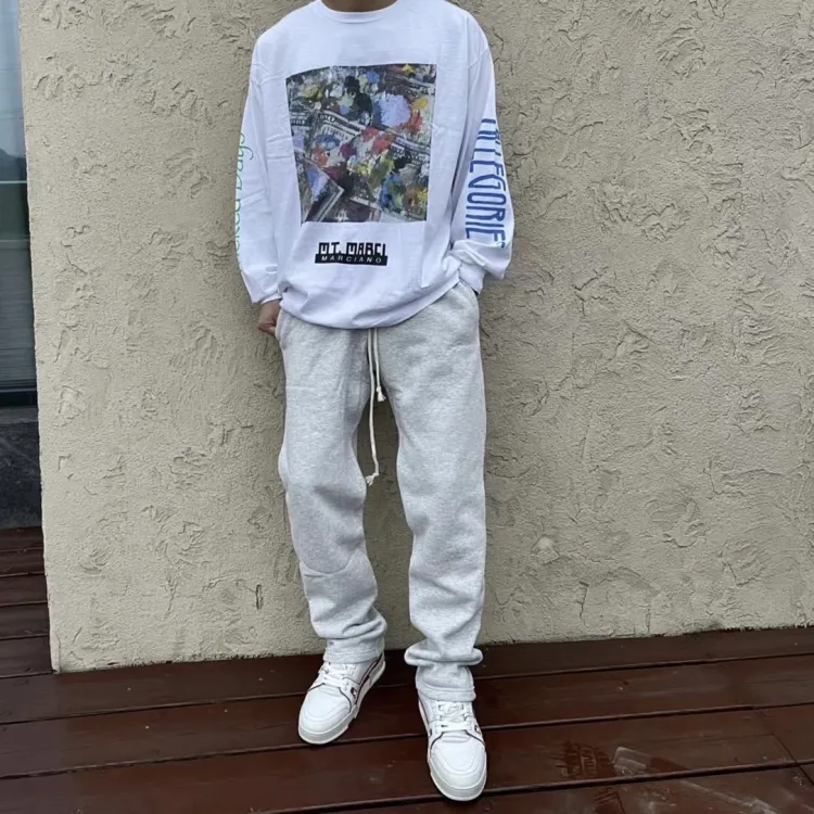 Askyurself x 블랙 D0pe 스트레이트핏 바지 캐주얼 팬츠 남녀공용 라이트 그레이 - POIZON