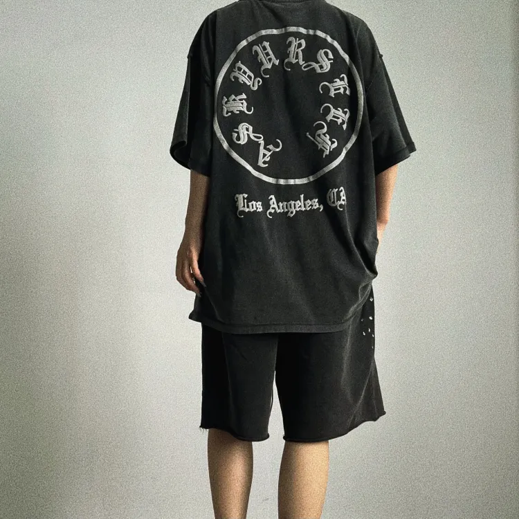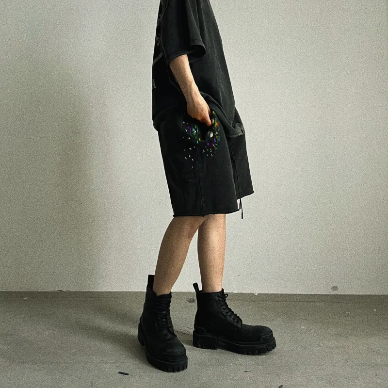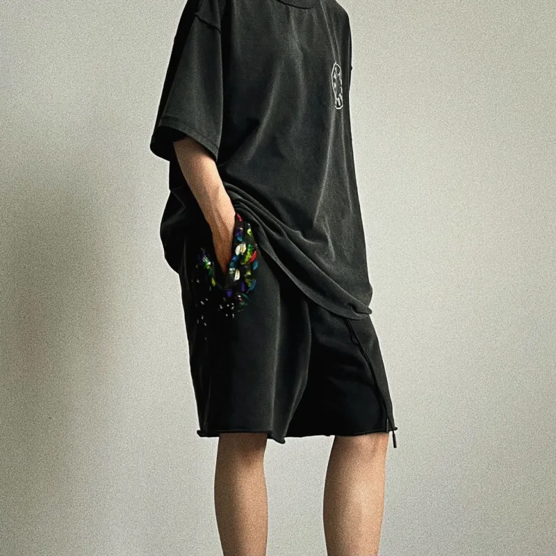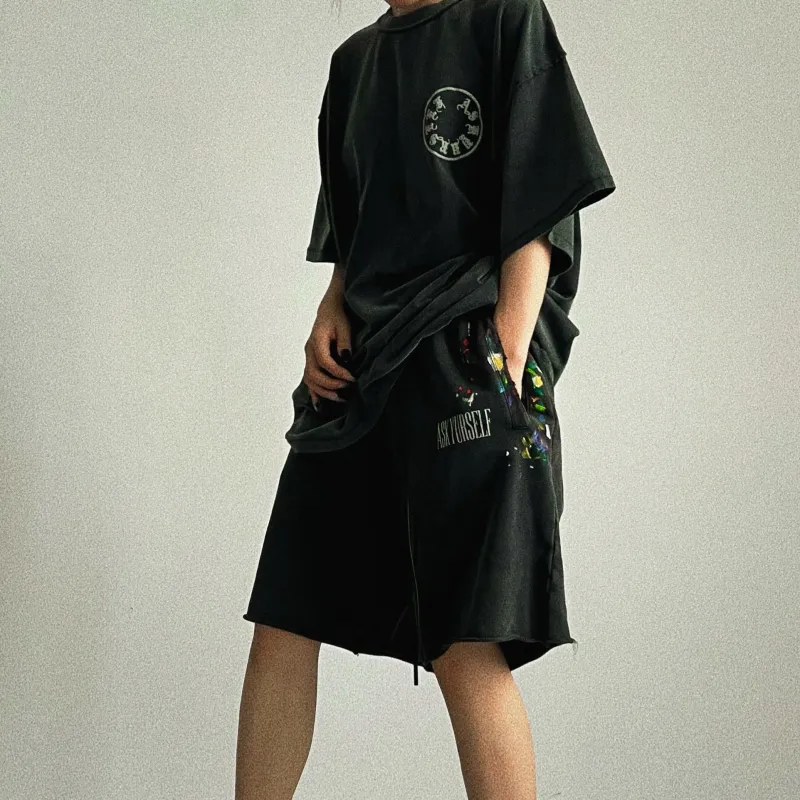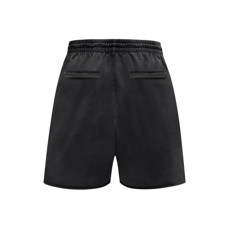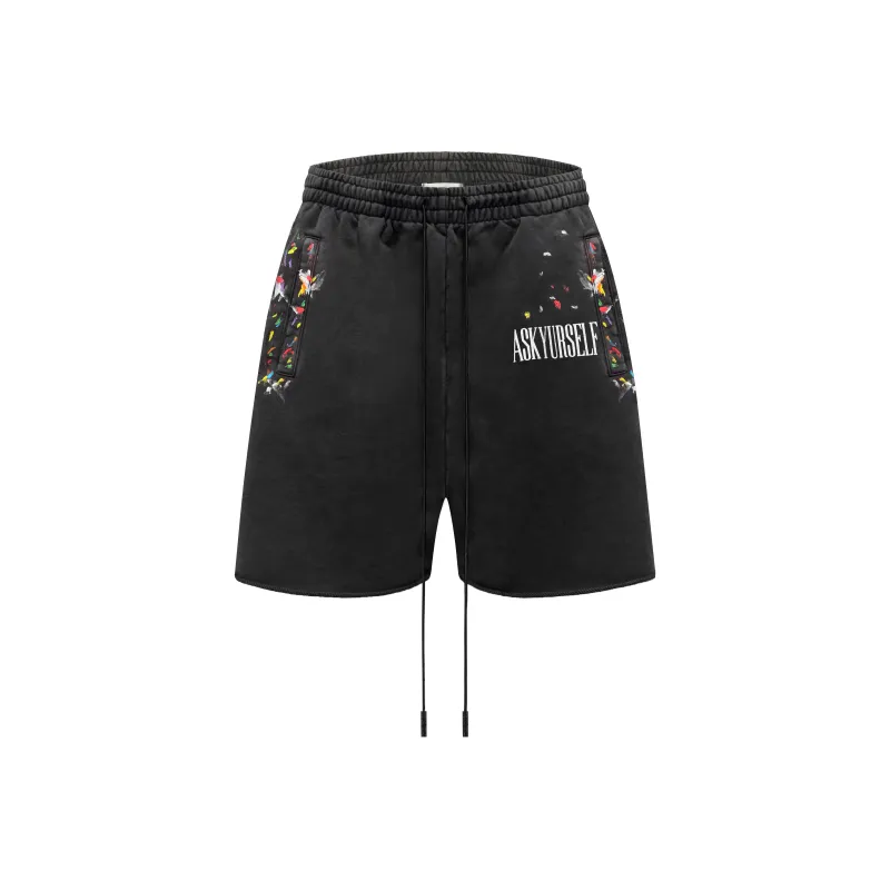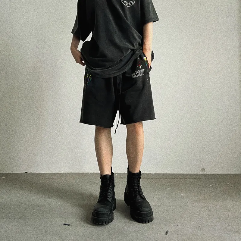 Askyurself 워시드 블랙 남녀공용 캐주얼 반바지 - POIZON