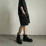 Askyurself 워시드 블랙 남녀공용 캐주얼 반바지