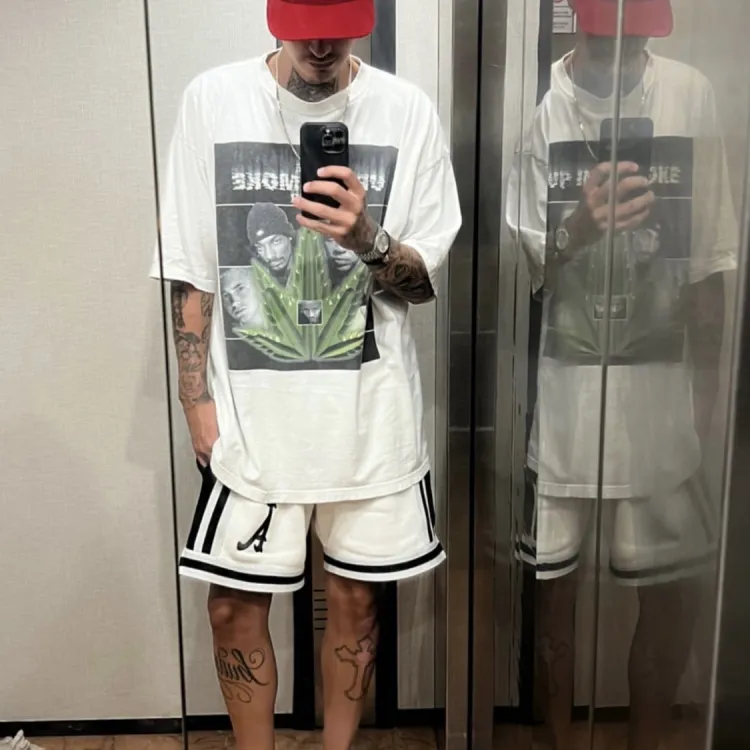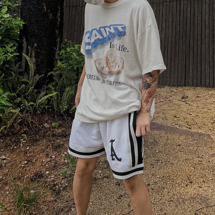 Askyurself 화이트 남녀공용 캐주얼 반바지 - POIZON