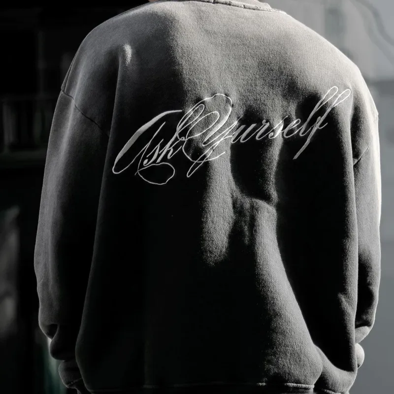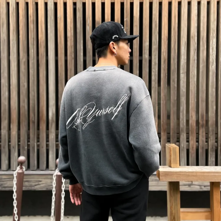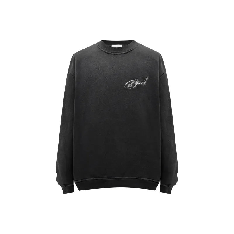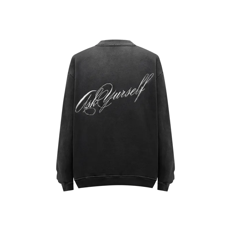 Askyurself 워시드 블랙 남녀공용 맨투맨 - POIZON