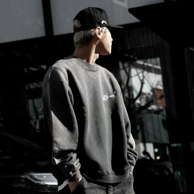 Askyurself 워시드 블랙 남녀공용 맨투맨