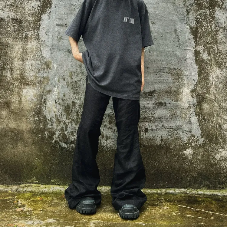 Askyurself 워시드 블랙 남녀공용 티셔츠 - POIZON