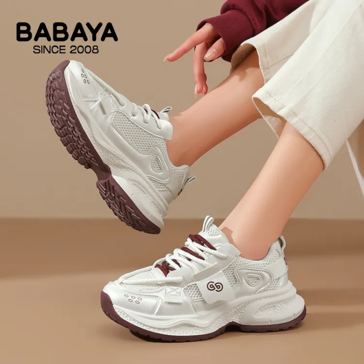 Babaya 쿠셔닝, 미끄럼방지, 내마모성, 통기성 좋은, 가벼움, 키높이 로우탑 청키 스니커즈 여성 - POIZON