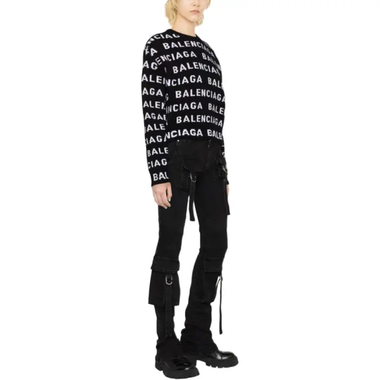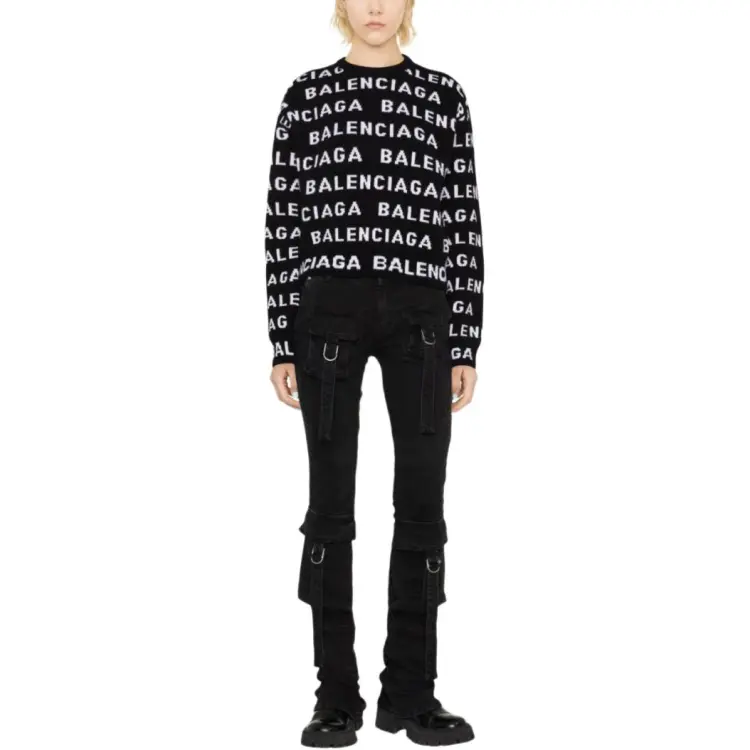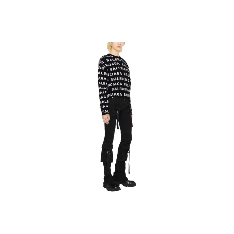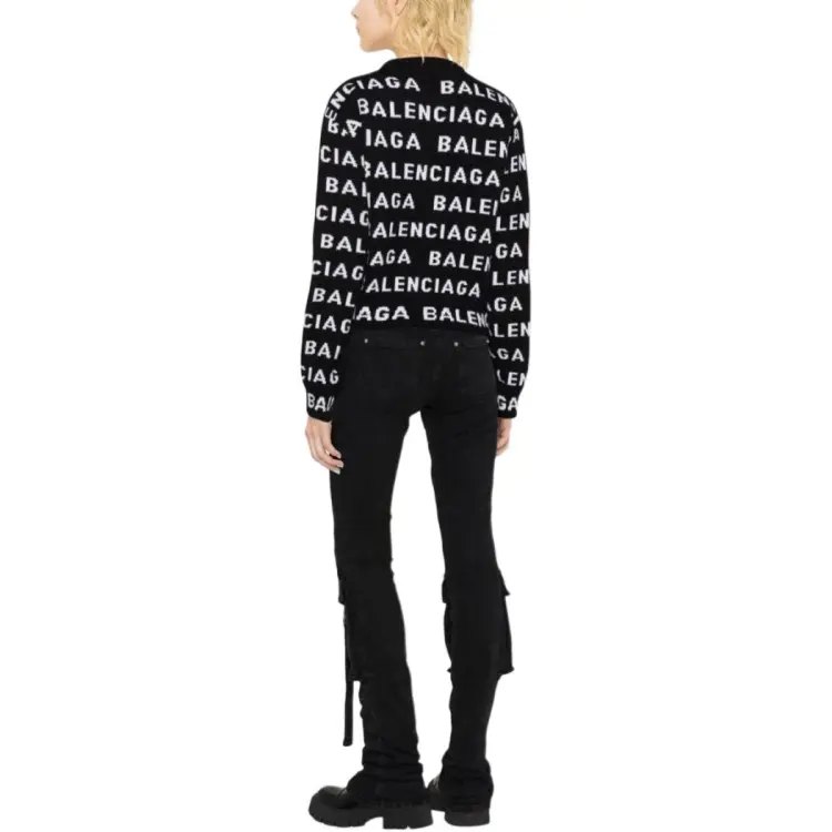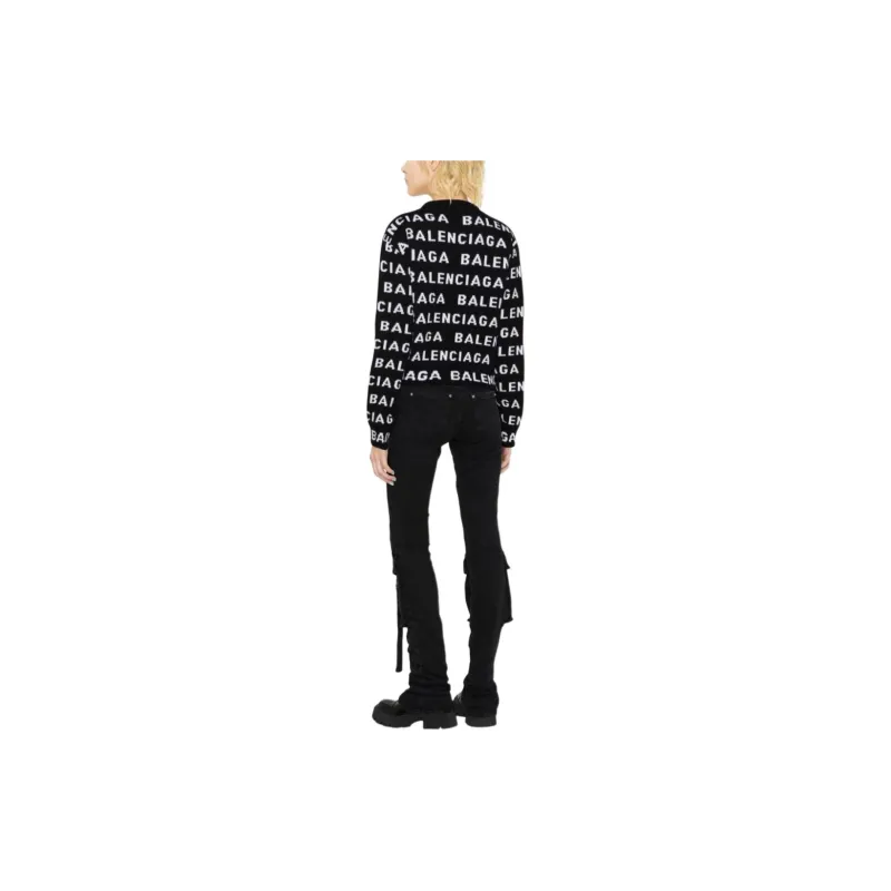 (W) 발렌시아가 올오버 로고 니트 블랙 화이트 - POIZON