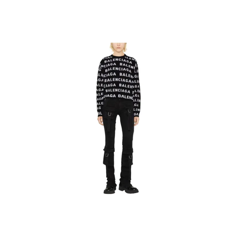 (W) 발렌시아가 올오버 로고 니트 블랙 화이트