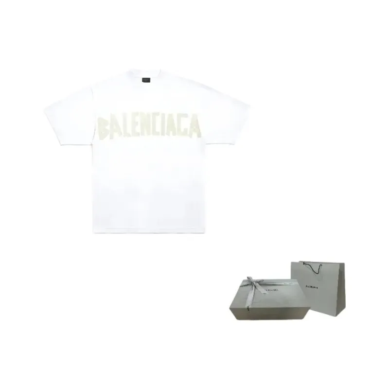 발렌시아가 테이프 타입 미디움 핏 티셔츠 화이트 - POIZON