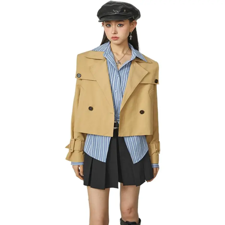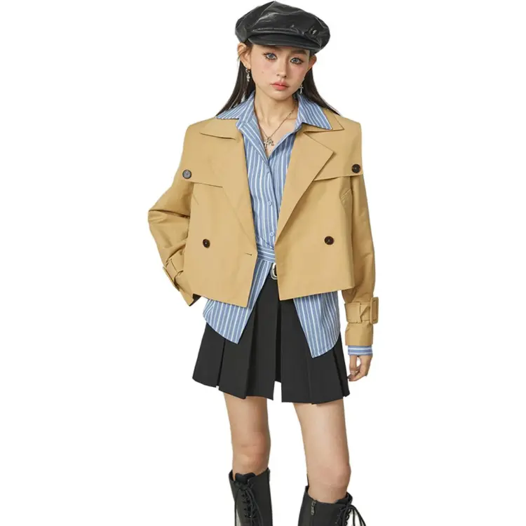BANANA CICI 카키 여성 크롭 코트 - POIZON
