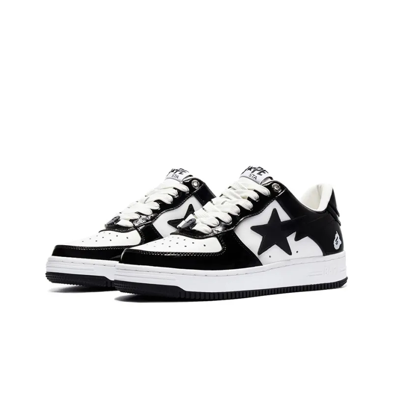 어 베이싱 에이프 STA Twisted Ape, 팬다 로우탑 트렌디 스케이트보드화 남성 블랙 화이트 - POIZON