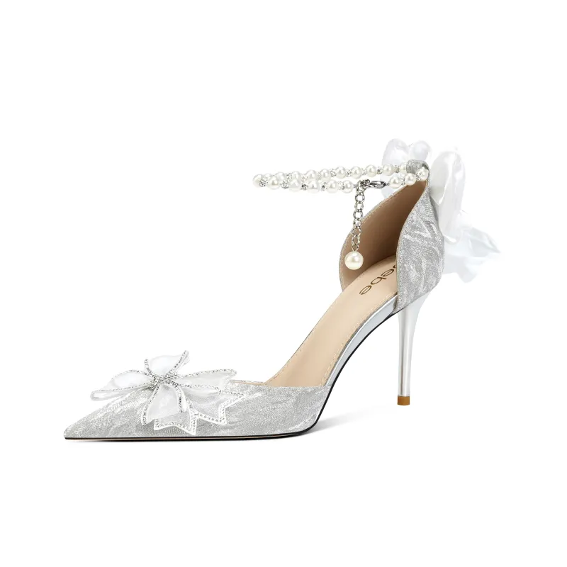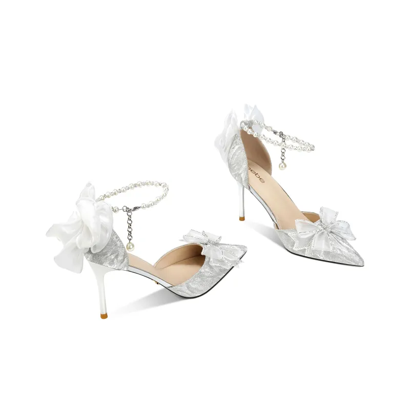 Bebe 선물 박스 세트 슬림 힐 하이 힐 8.5cm 여성 실버 - POIZON
