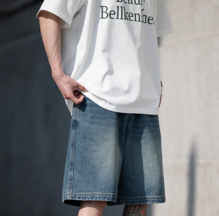 BELLKENIDEA 워시드 블루 남녀공용 데님 반바지 - POIZON