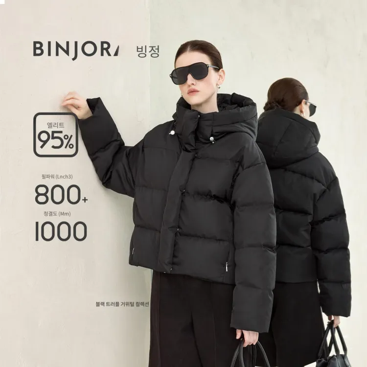 BENGEN 블랙 여성 다운 재킷