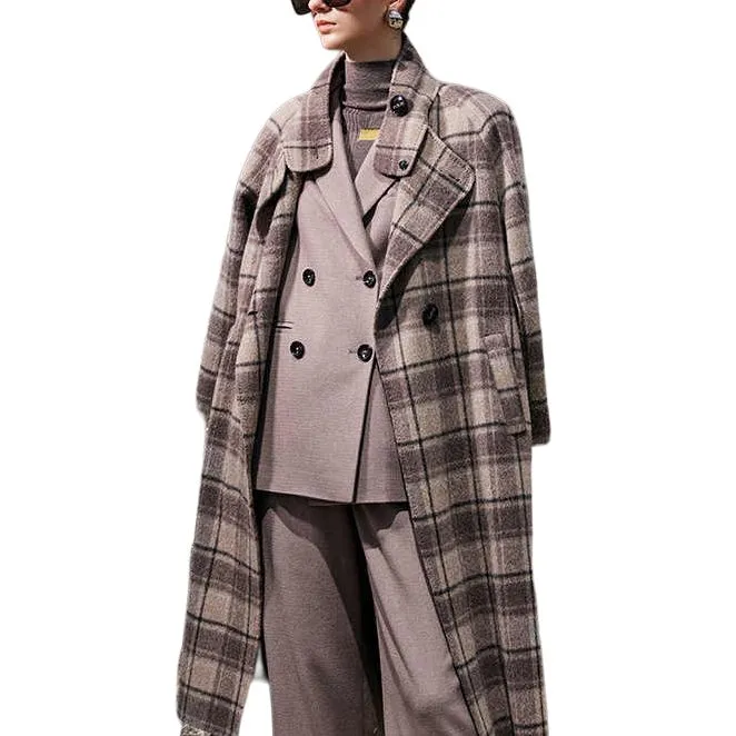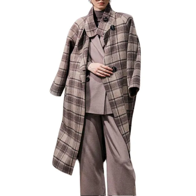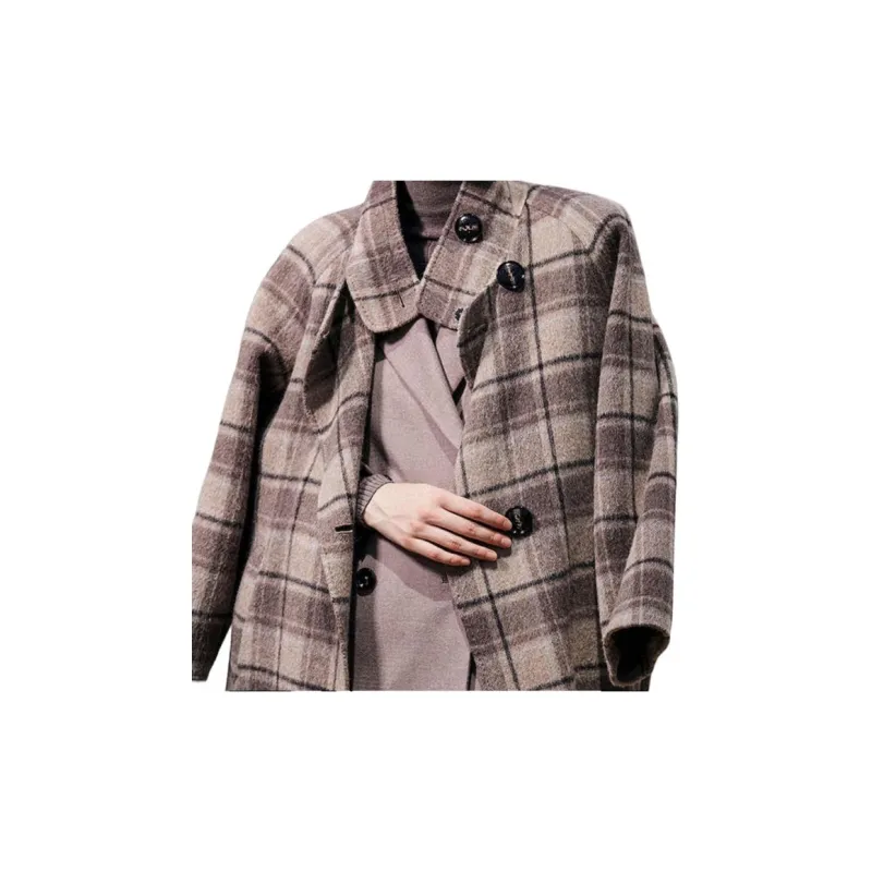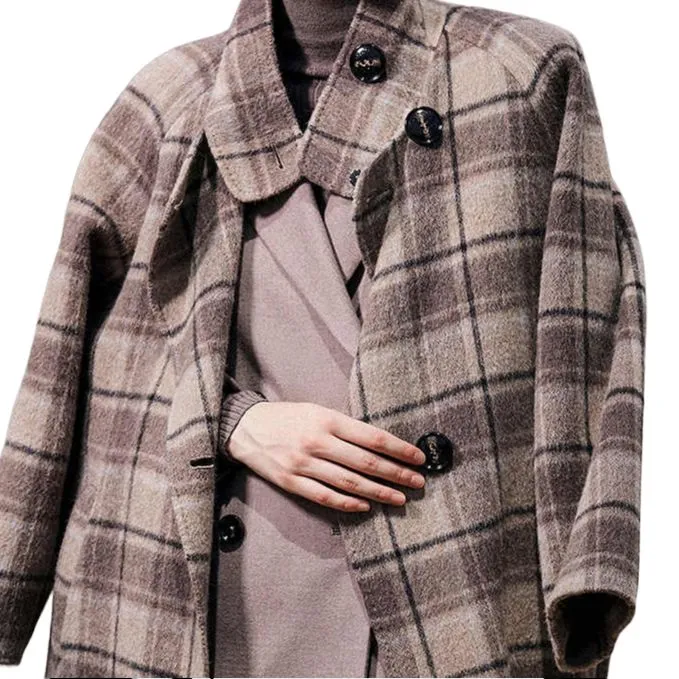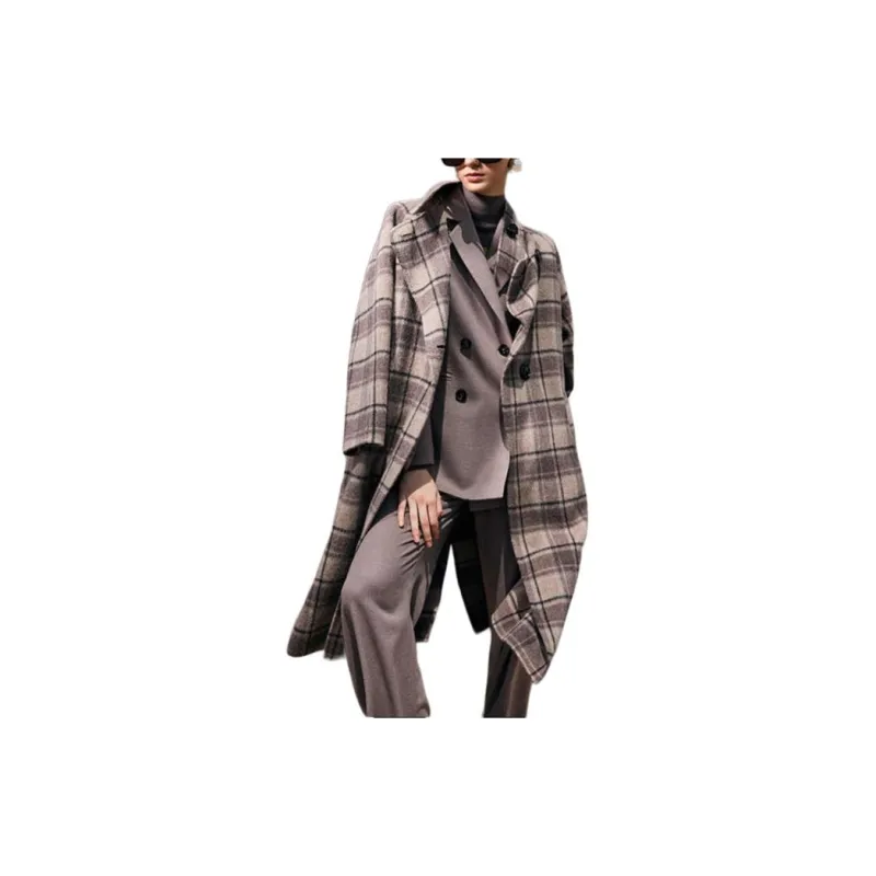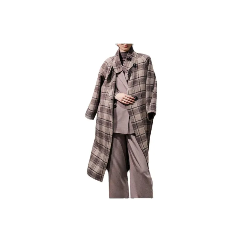 BESIONIA 브라운 체크 여성 코트 - POIZON