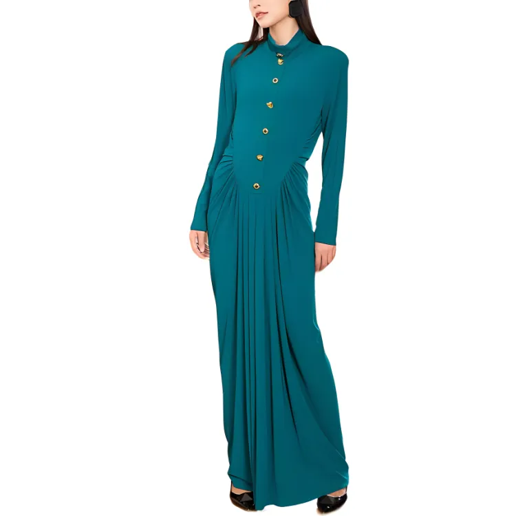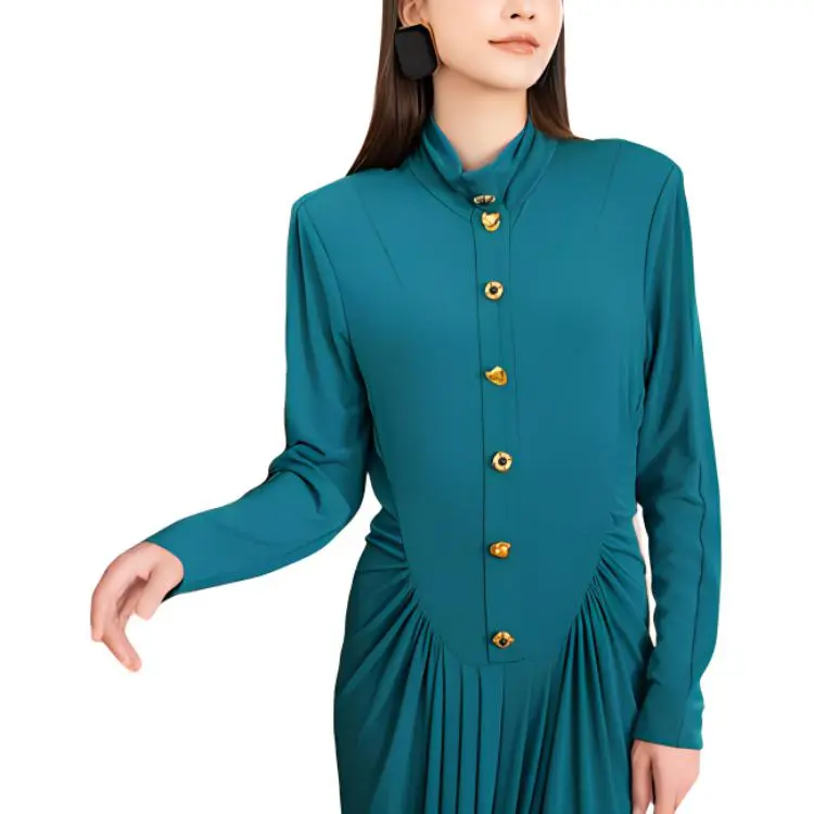 BESIONIA 피콕 블루 여성 긴팔 원피스
