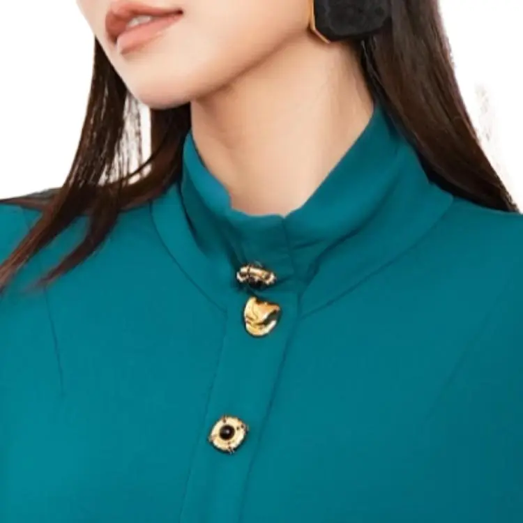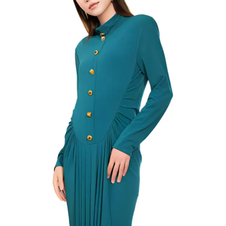 BESIONIA 피콕 블루 여성 긴팔 원피스 - POIZON