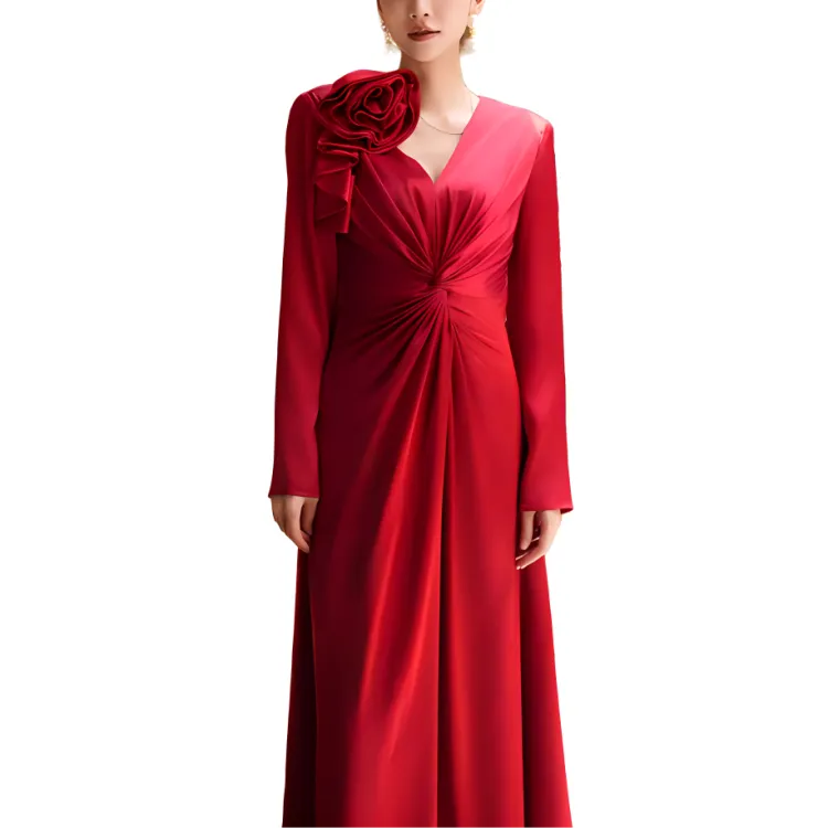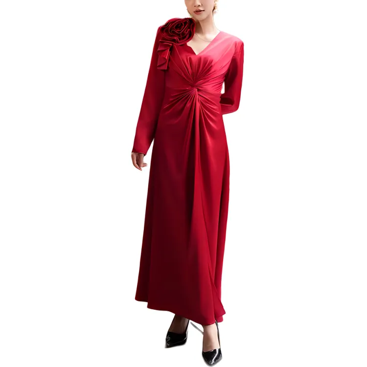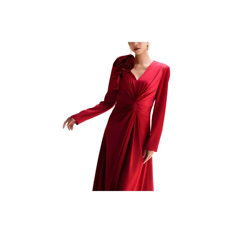 BESIONIA 레드 여성 긴팔 원피스 - POIZON