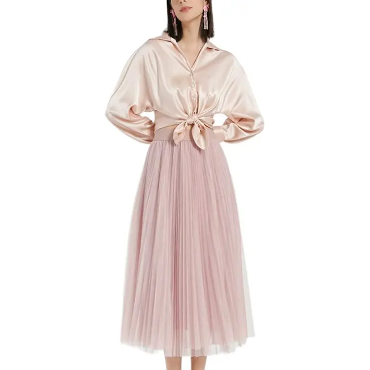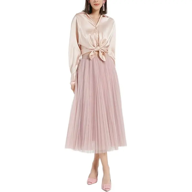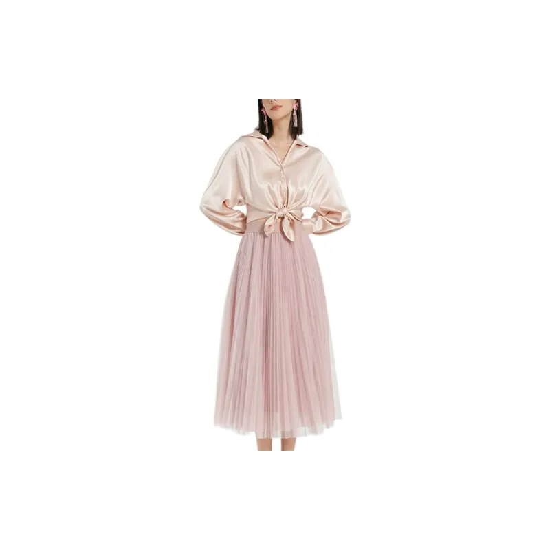 BESIONIA SS24 캐주얼 롱 기장 스커트 여성 핑크 - POIZON