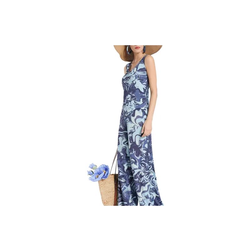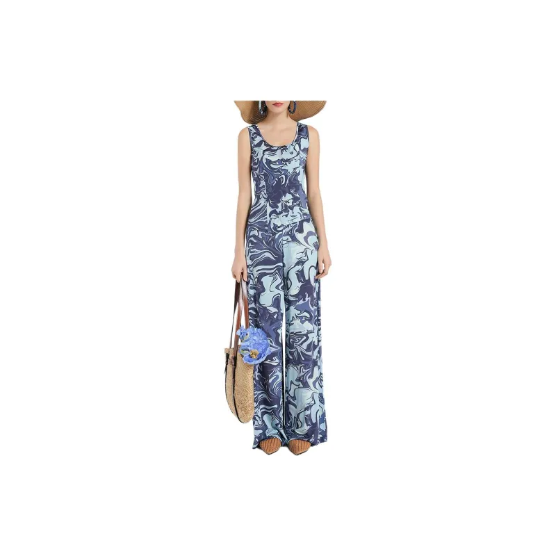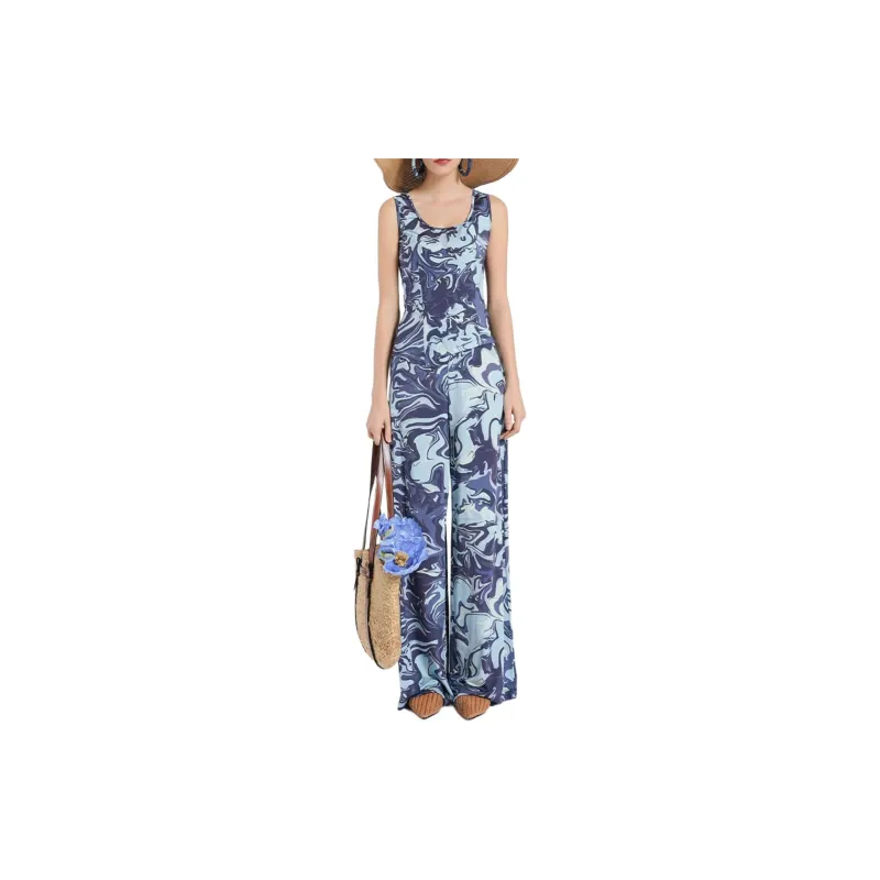 BESIONIA 블루 패턴 여성 캐주얼 팬츠 - POIZON