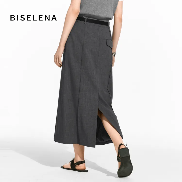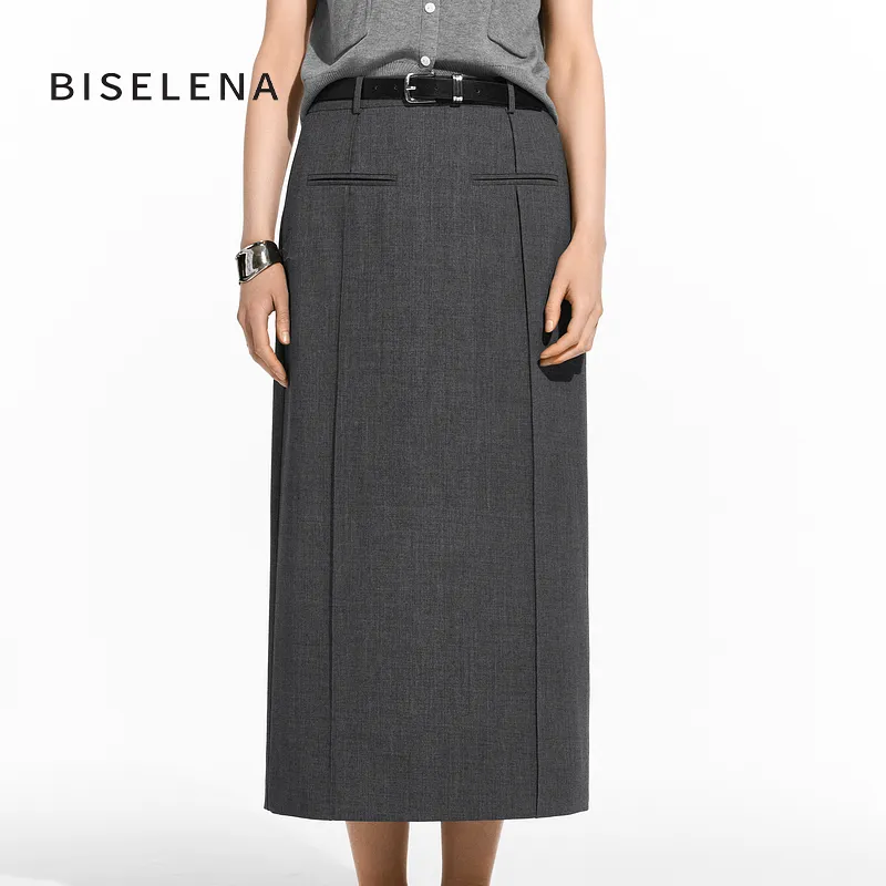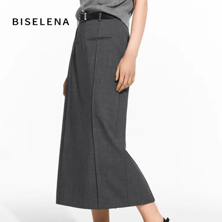 Bethine 프리미엄 그레이 여성 캐주얼 롱 스커트 - POIZON