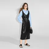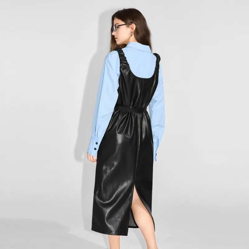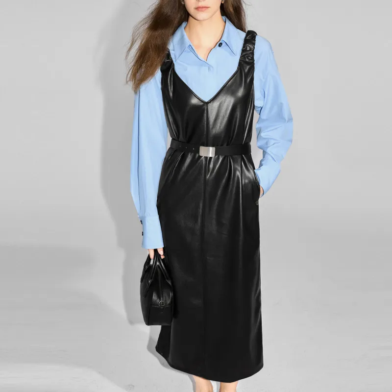 Bethine 미스테리어스 블랙 여성 가죽 롱 스커트 - POIZON