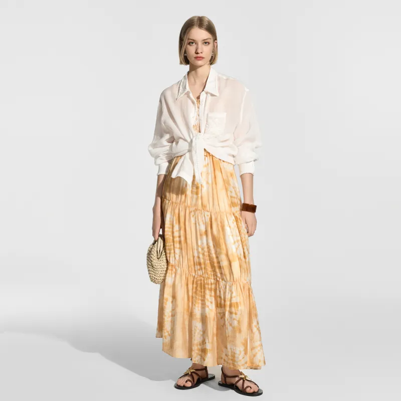 원단: 72.8% 라이오셀, 22.2% 폴리에스터 아세테이트, 5% 안감 1: 100% 폴리에스터, 안감 2: 92.8% 폴리에스터, 7.2% 스판덱스