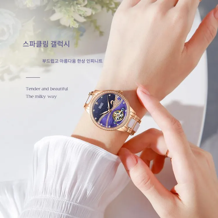 BEXEI 스완 컬렉션 메커니컬 무브먼트 세라믹 스트랩 중국 시계 여성 시계 퍼플 시계 다이얼 - POIZON
