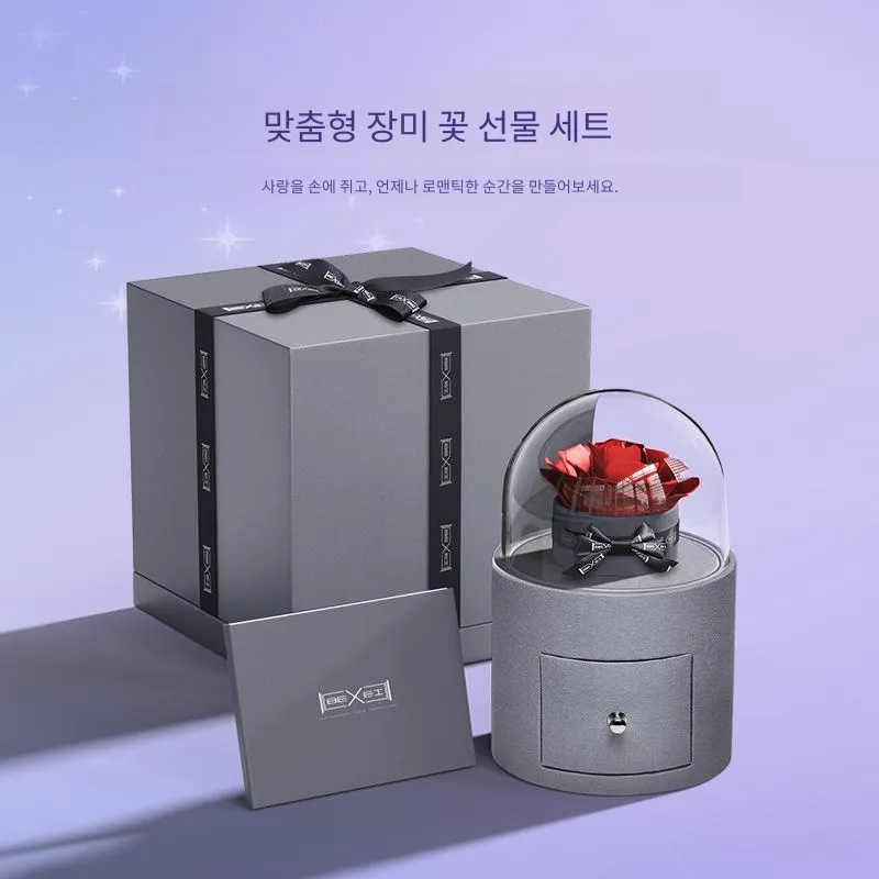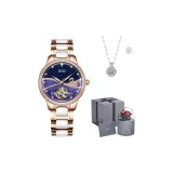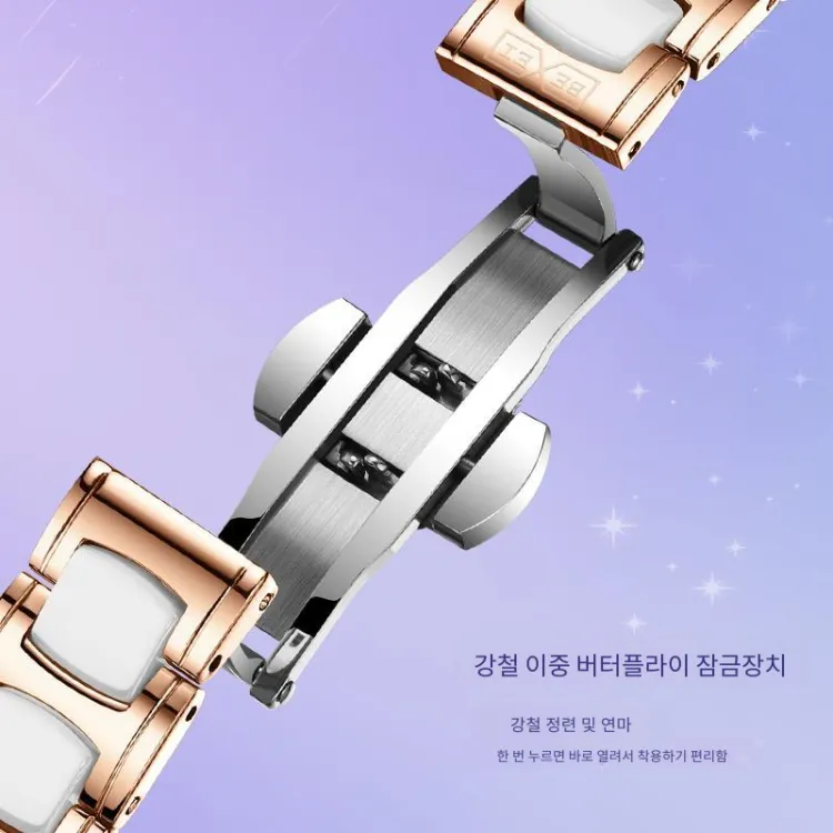 6136-로즈 골드 세라믹 스틸 시계줄 [프리저브드 플라워 박스 + 꽃무늬 목걸이]