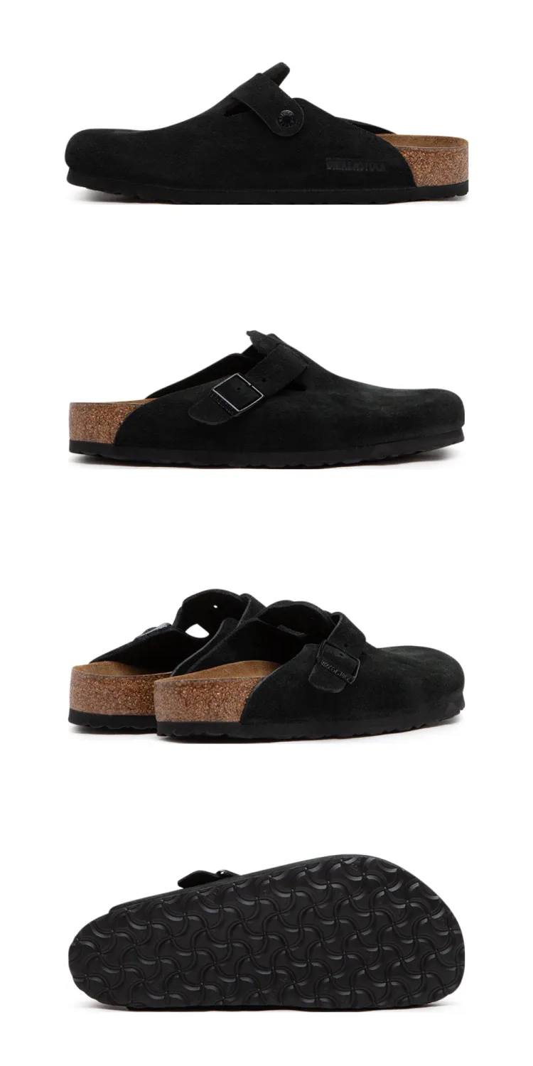 버켄스탁 보스턴 소프트 풋베드 스웨이드 레더 블랙 - 레귤러 - POIZON